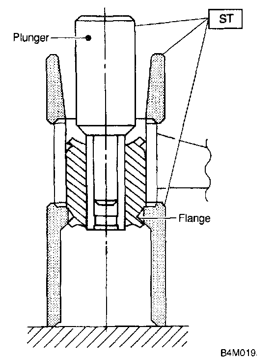 CAUTION: When installing bushing, turn ST plunger upside down and press it until plunger end surface contacts trailing link end surface.