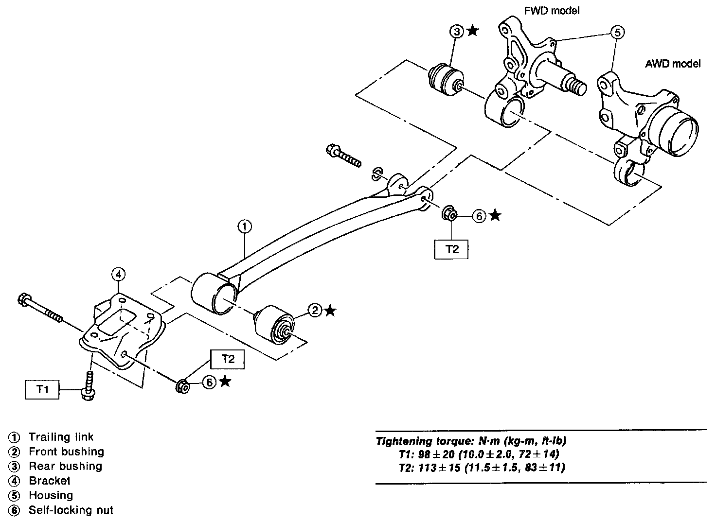 4) Remove bolt which secure trailing link to trailing link bracket.