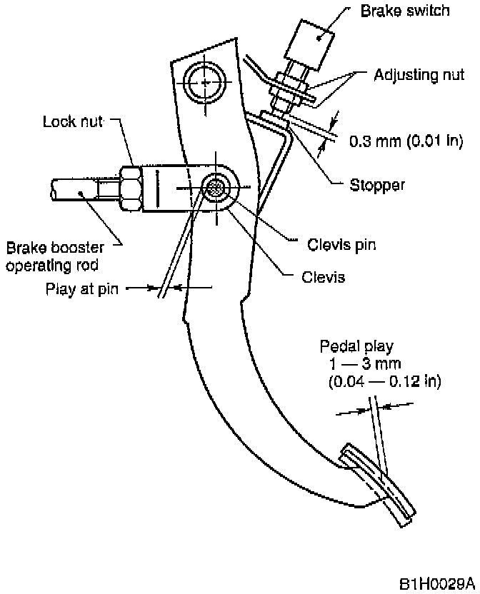 If the free play is out of specifications above, adjust the brake pedal as follows: