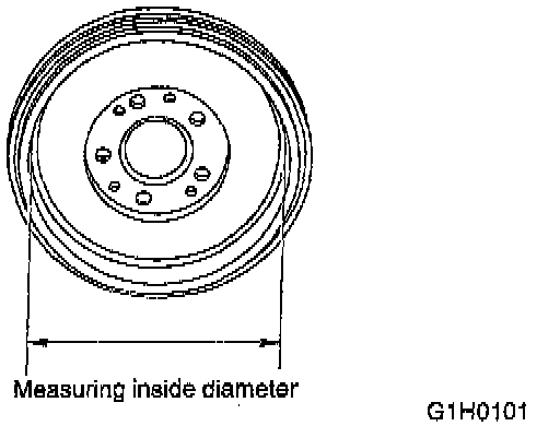 If the inside surface of brake drum is streaked, correct the surface with emery cloth (#200 or more). If it is unevenly worn, tapered, or the outside surface of brake drum is damaged, correct or replace it.