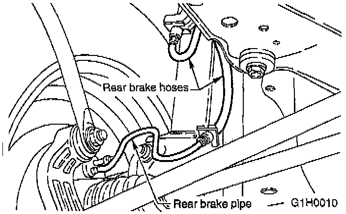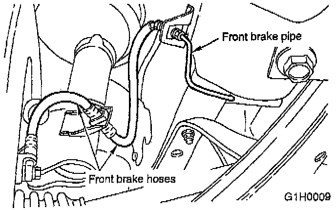 1. Check scratches, swelling, corrosion and/or traces of fluid leakage on brake hoses or pipe joints.
