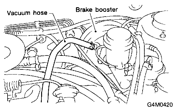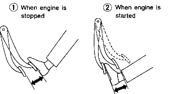 3. As engine starts, brake pedal should move slightly toward the floor. If no change occurs in the pedal height, brake booster is faulty.