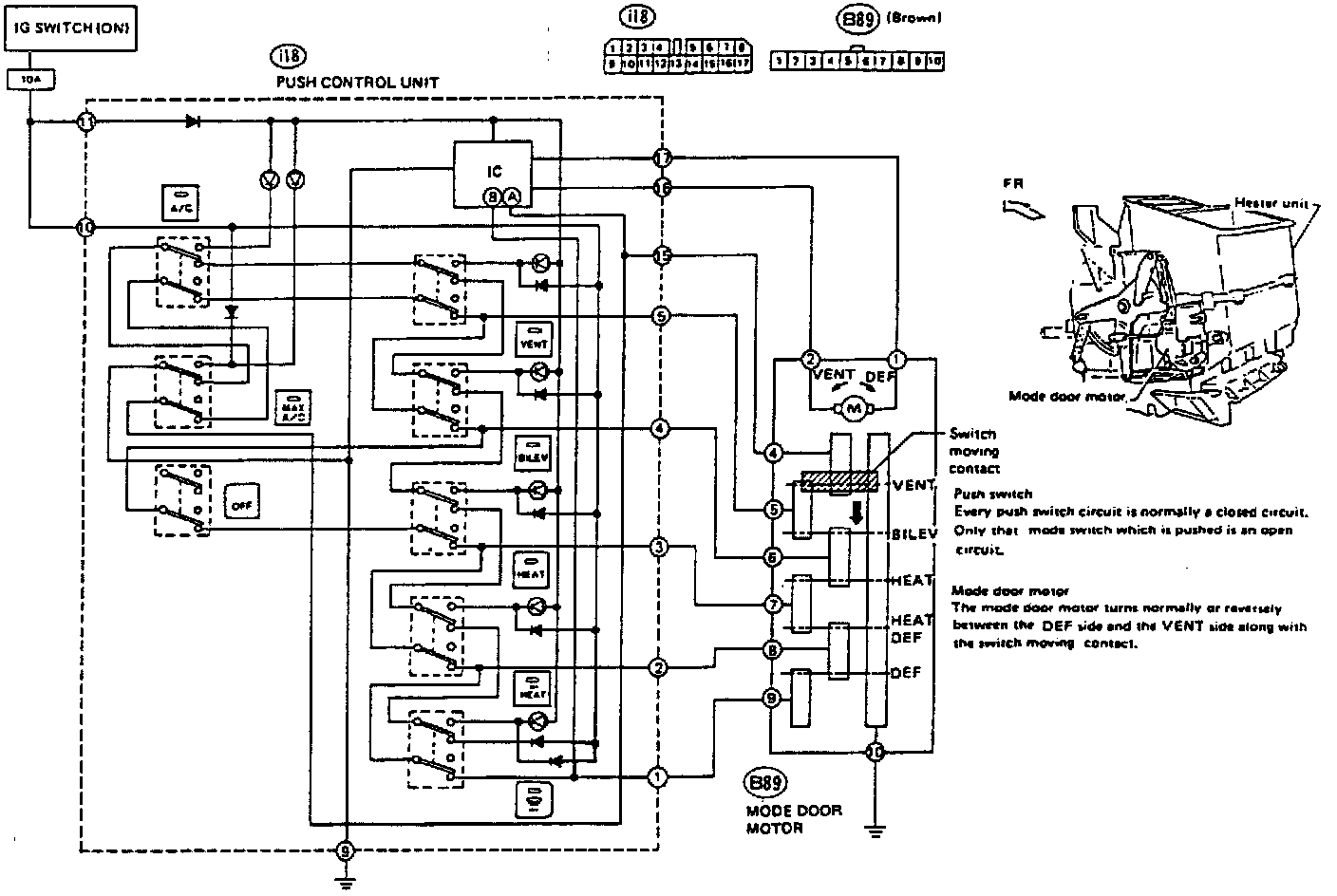 - While circuit A becomes minus circuit, 12 volts exists at terminal and terminal of mode door motor becomes body ground in circuit B. As a result, the motor and switch moving contact move together toward DEF position.