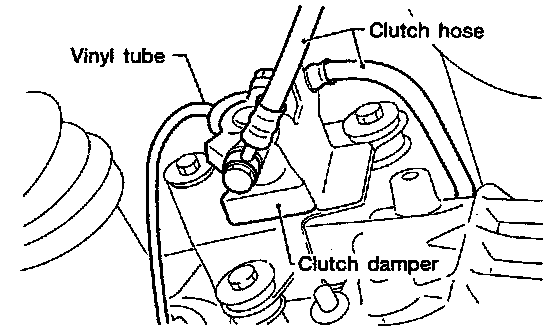 Bleed air from oil line with the help of a co-worker.1. Fit one end of a vinyl tube into the air bleeder of clutch damper and put the other end into a clutch fluid container.