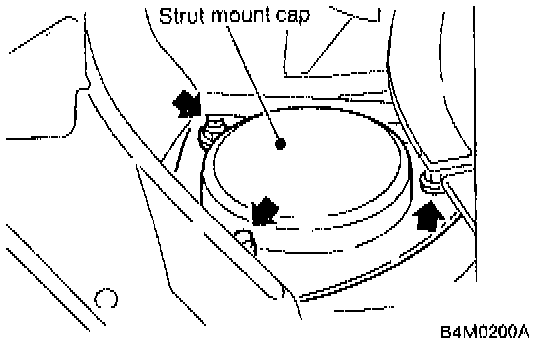 ^ Install rear strut with "4WD" mark on strut mount facing outside of vehicle body.