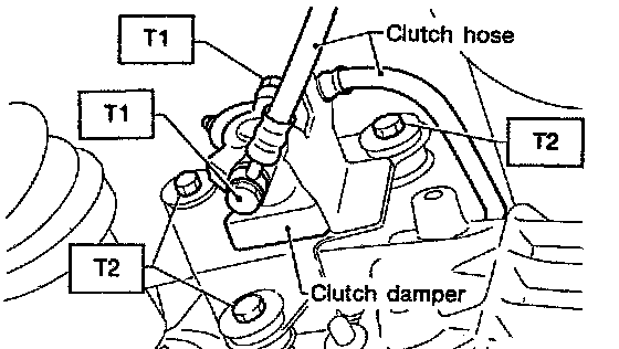 A: REMOVAL AND INSTALLATION1. Remove clutch hoses from clutch damper.