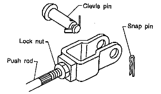 2. Remove snap pin, clevis pin and separate push rod of master cylinder from clutch pedal.
