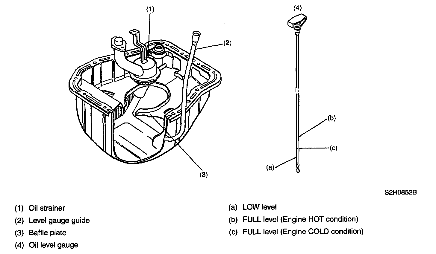 Oil Pan and Oil Strainer^ The oil pan is attached to the cylinder block using liquid gasket for sealing. The oil strainer is a metal net type and removes large foreign particles from the engine oil. It is located in the middle of the oil pan. The pipe from the strainer is connected to the suction port of the oil pump in the left bank of the cylinder block.