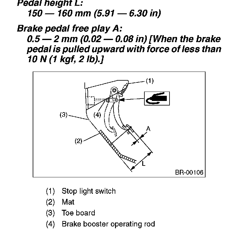3. If it is not within the specified value, adjust it by adjusting the brake booster operating rod length.