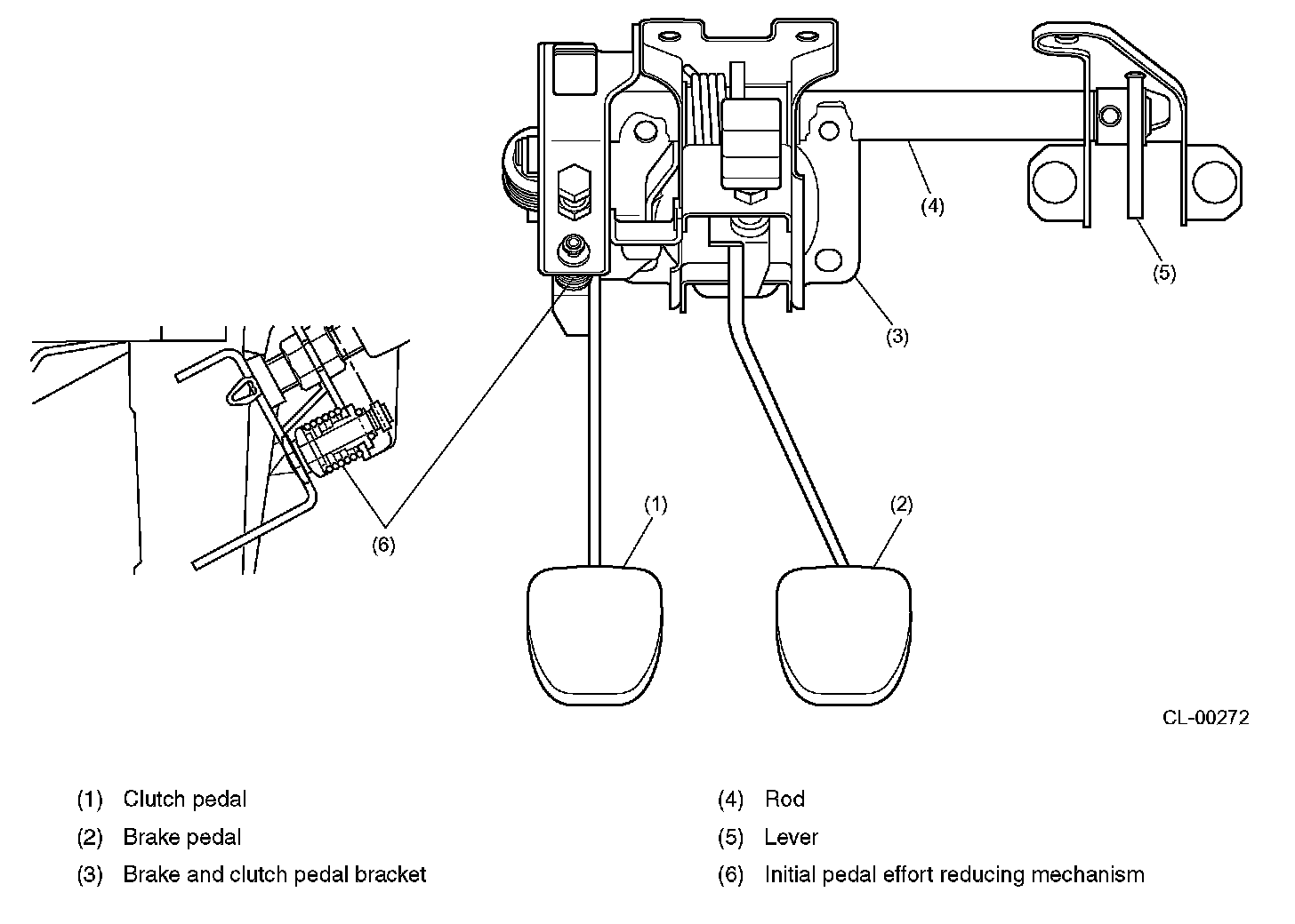 - The clutch pedal has a mechanism that reduces (assists) the force required to depress the clutch pedal and reduce the initial pedal depressing force.