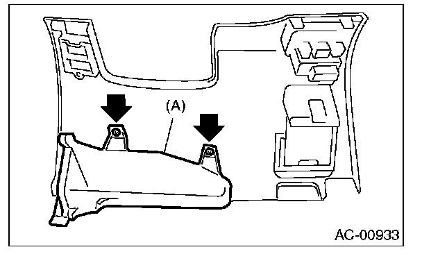 4. Pull off the floor mat to remove the rear center heater duct (A) and rear heater duct LH, RH (B).