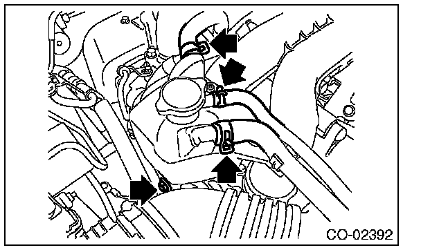 5. Disconnect the engine coolant hose which connects the under side of coolant filler tank.