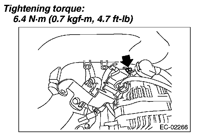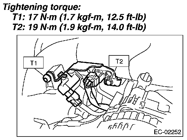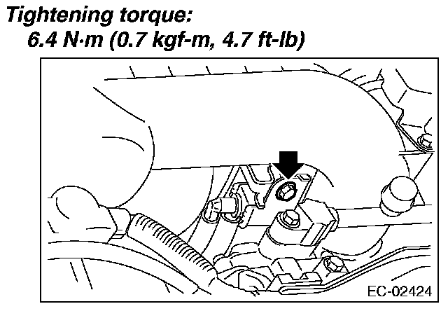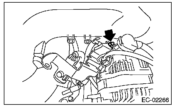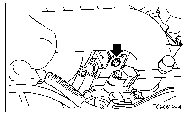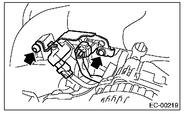 3. Remove the bolts which install purge control solenoid valve 1 to the intake manifold, and disconnect the connector from the purge control solenoid valve 1.