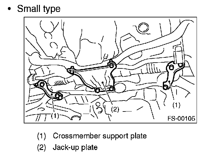 8. Remove the front crossmember support plate, jack-up plate and front stabilizer.