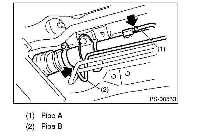 9. Remove the one pipe joint at the center of the gearbox, and connect the vinyl hose to the pipe and the joint. Discharge the fluid by turning the steering wheel fully clockwise and counterclockwise. Discharge the fluid similarly from other pipes.