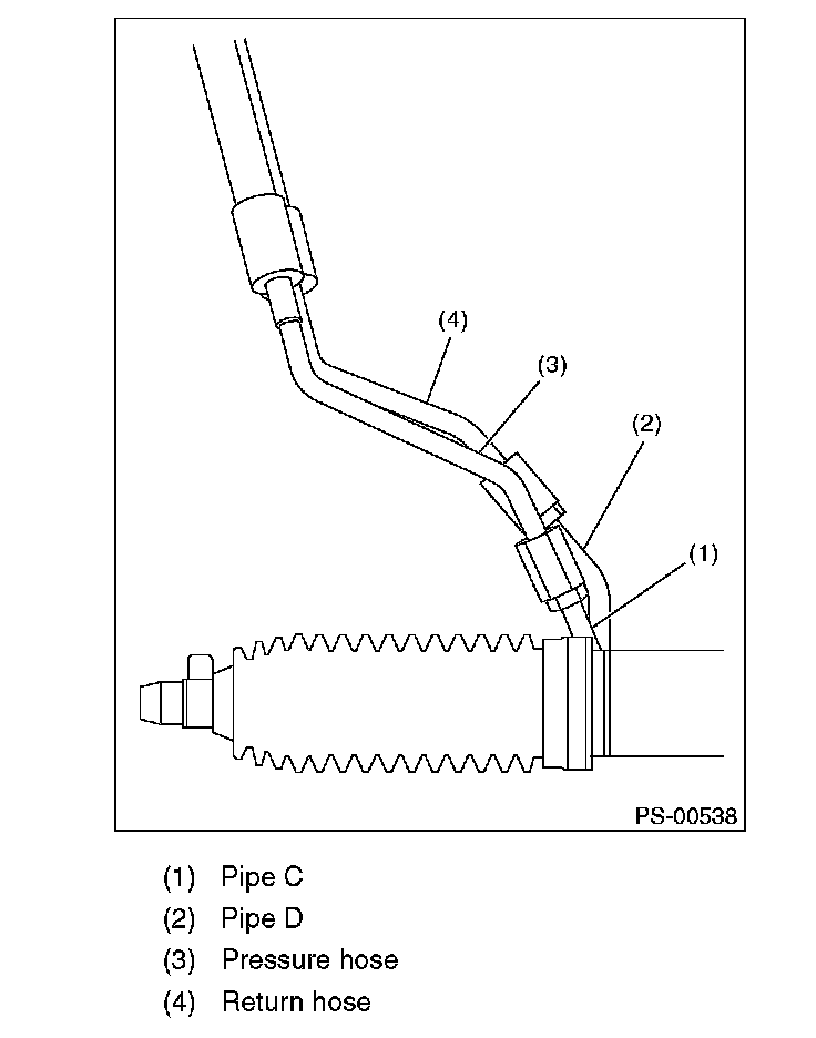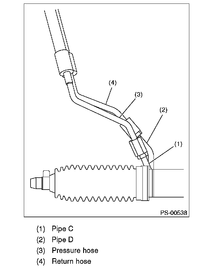 5. Connect pipe D to the return hose, then connect pipe C to the pressure hose.