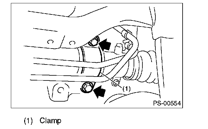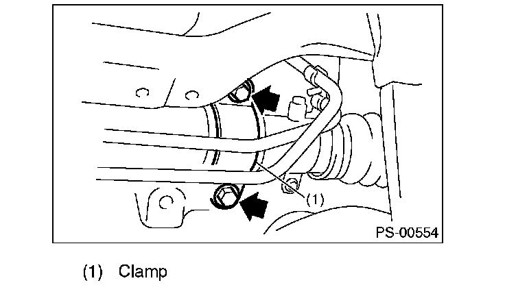 12. Remove the clamp bolts securing the gearbox to the crossmember, and remove the clamp.