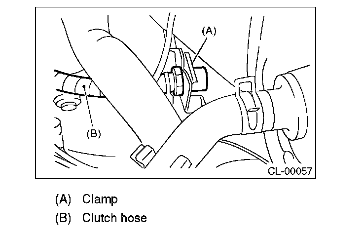 5. Pull out the clamp, then remove the clutch hose from the bracket.