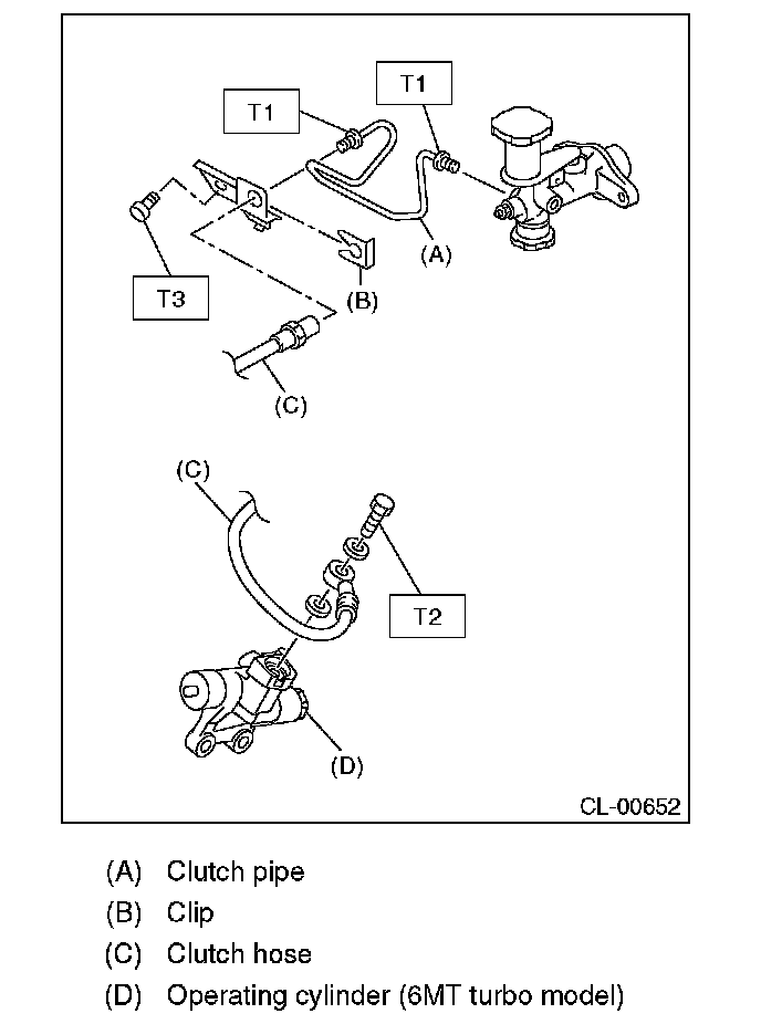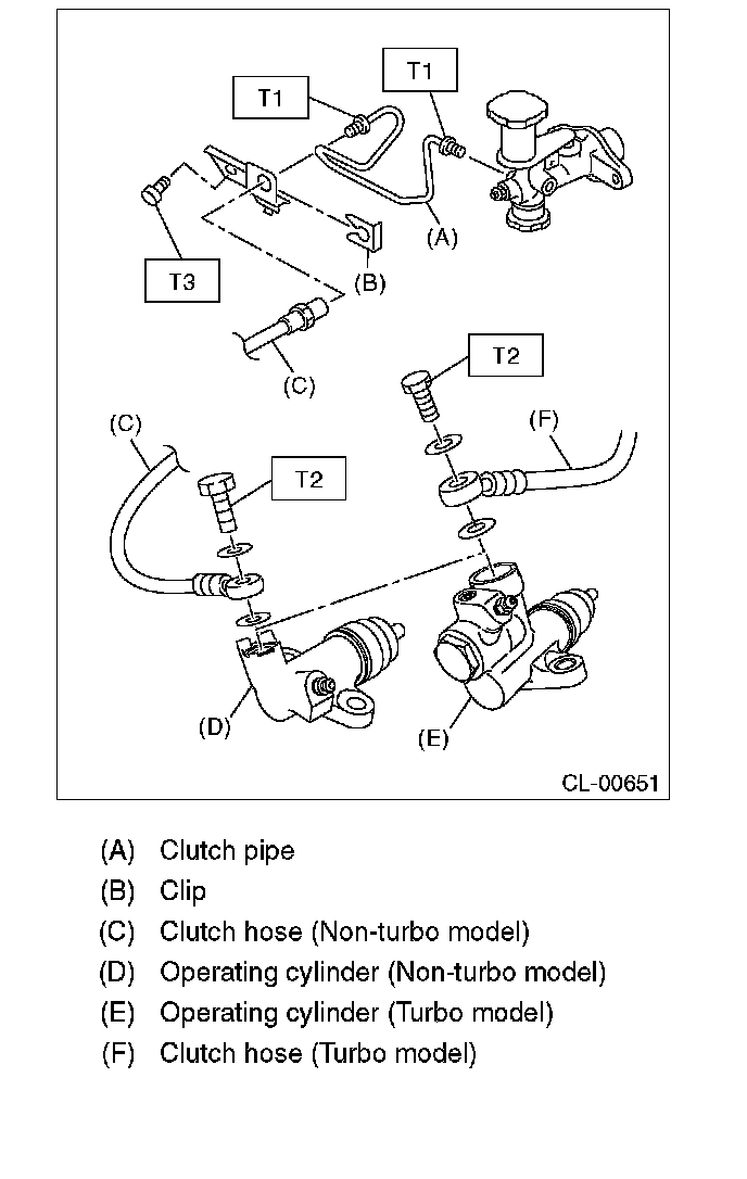 4. Disconnect the clutch pipe from the clutch hose and master cylinder.