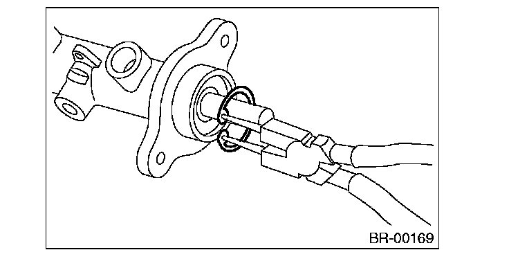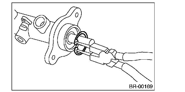 7) Clean the inside of master cylinder with brake fluid. Check the inside of the cylinder for damage, deformation and wear. Replace the master cylinder as assembly if faulty.