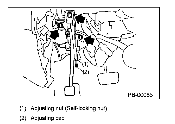 5) Remove the adjuster cap and parking cable adjusting nut (self-locking nut)