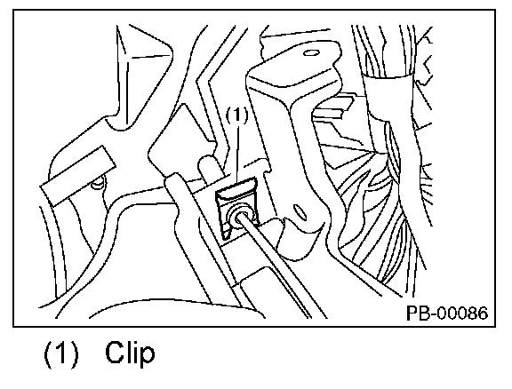 6) Remove the clip from the parking brake pedal, and remove the front parking brake cable.