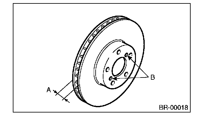 (2) If disc rotor is seized up on the hub, drive the disc rotor out by pushing two 8-mm bolts in holes B on the rotor.
