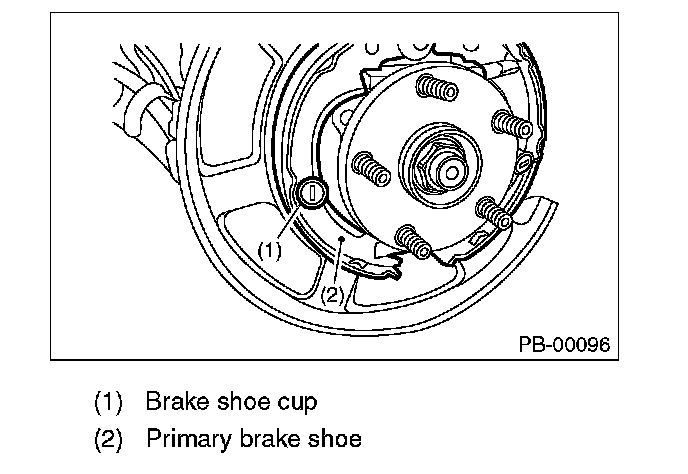 7) Remove the brake shoe cup and brake shoe spring, then remove the primary brake shoe.