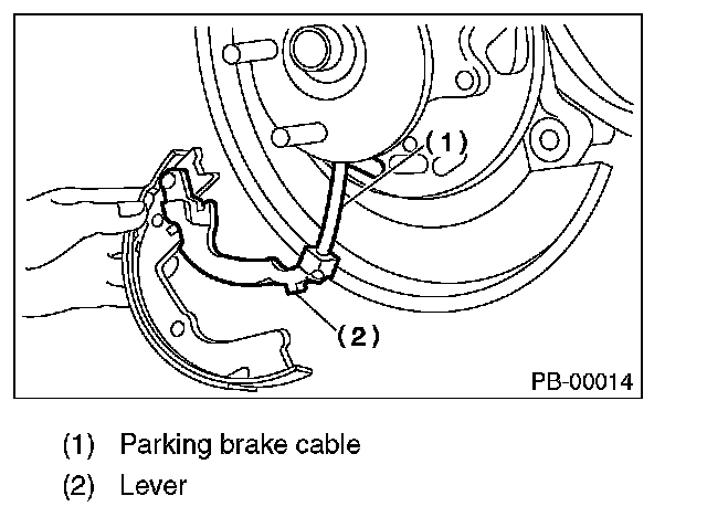 10) When replacing with a new brake shoe, drive the vehicle to break-in the parking brake lining.