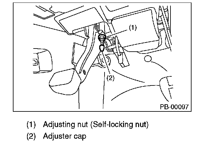 4) Turn the adjusting nut until the pedal stroke is at the specified value.