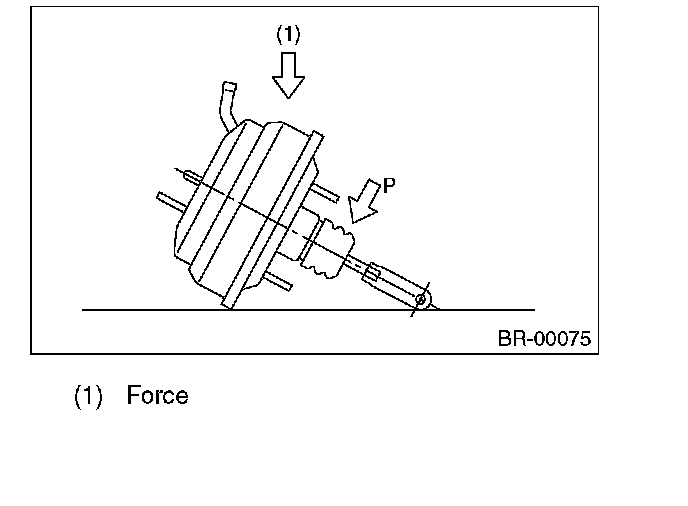 - If external force is applied from above when brake booster is placed in this position, the resin portion as indicated by "P" may become damaged.