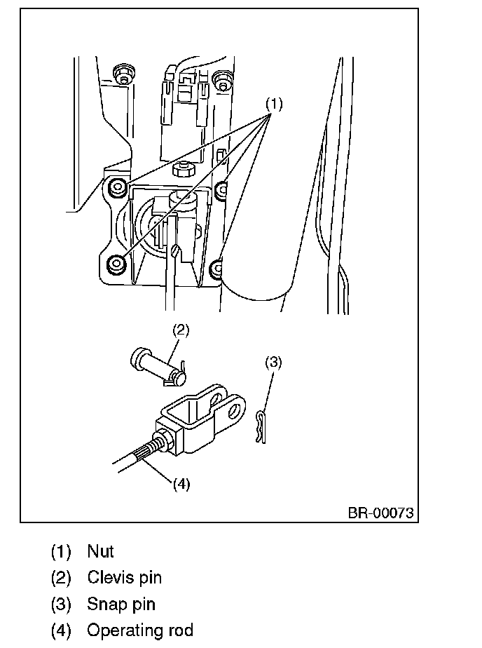 3) Connect the operating rod to brake pedal with the clevis pin and snap pin.