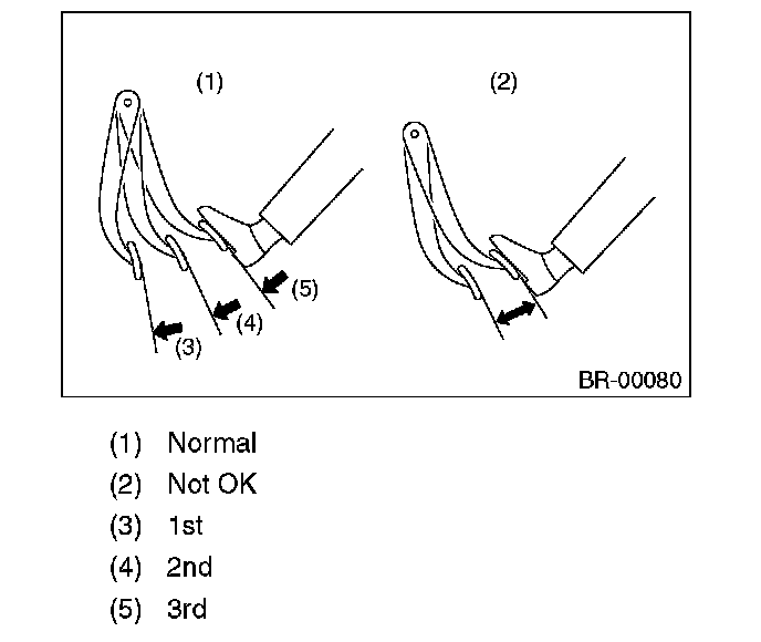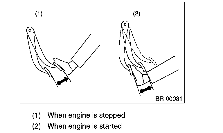1) While the engine is OFF, depress the brake pedal several times applying the same pedal force, to check for a change in pedal height.