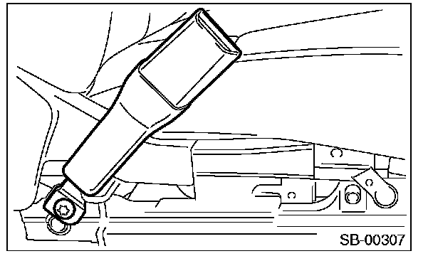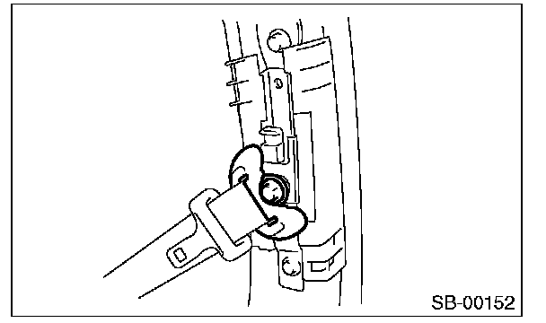 - After the driver's and passenger's inner seat belt assembly installation, check that the seat belt buckle switch operates normally using the Subaru Select Monitor III in {Status Data} of "Airbag System". Improper buckle switch operation may cause airbag system malfunction.
