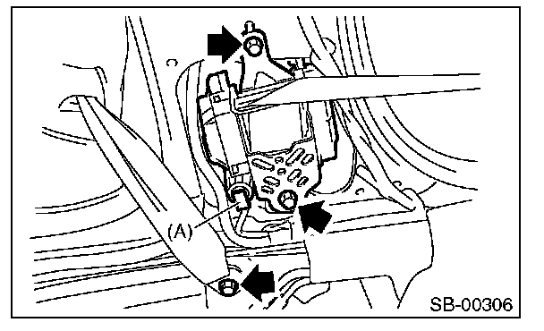 6. Disconnect connector (A) of the pretensioner, and remove the lower anchor bolt and seat belt retractor.