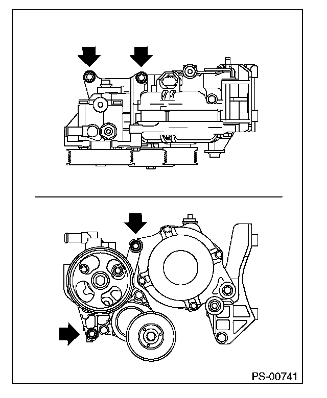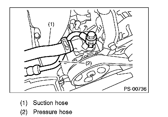 6) Disconnect the pressure hose and suction hose from power steering pump.