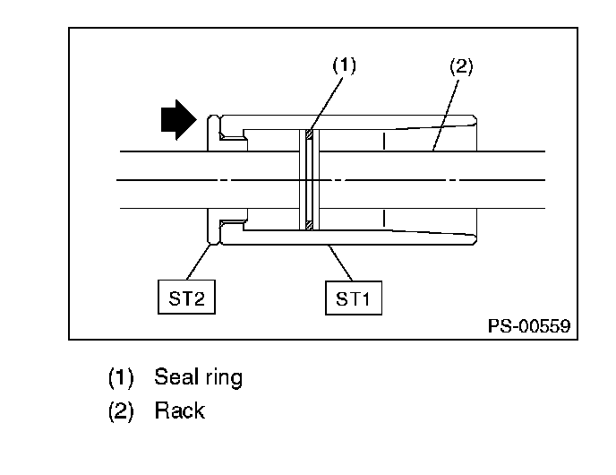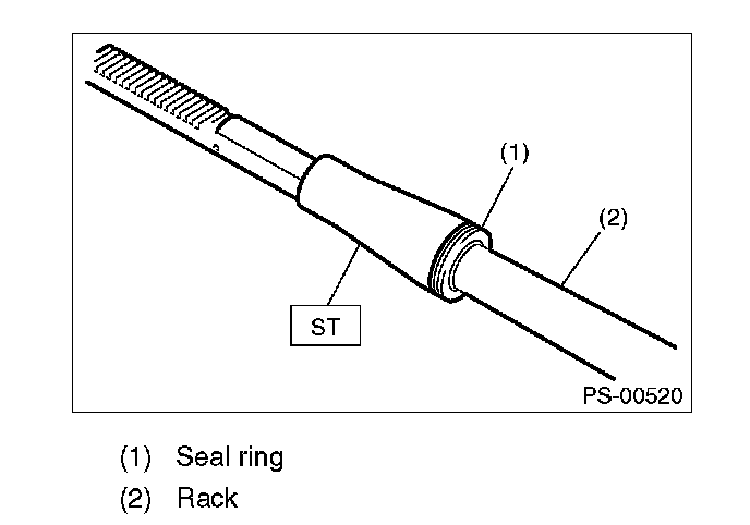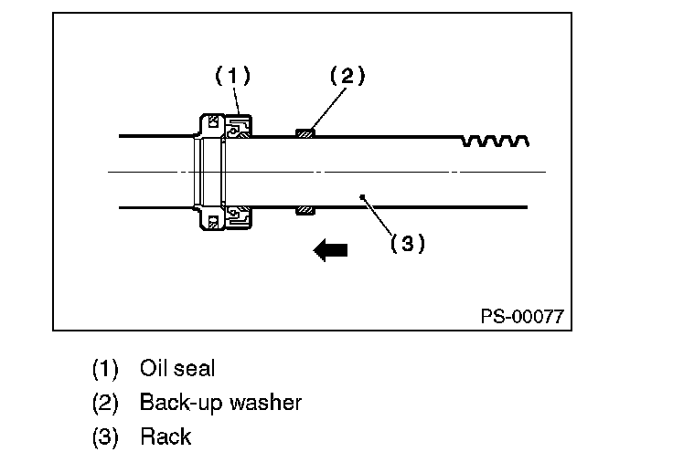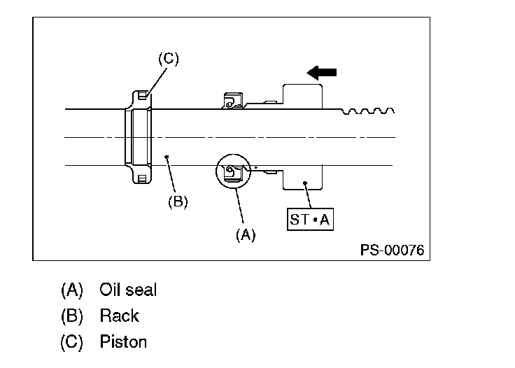 6) Insert the STA with oil seal assembled from the gear side of rack. Remove the oil seal from STA near piston, and then remove the STA from rack.