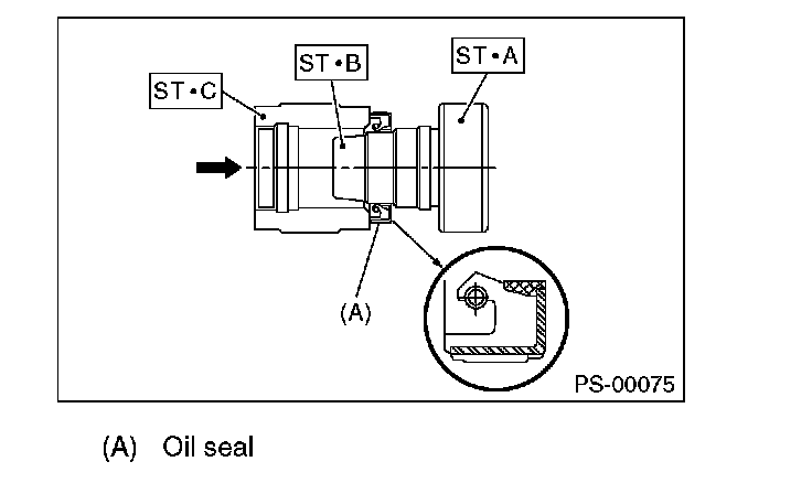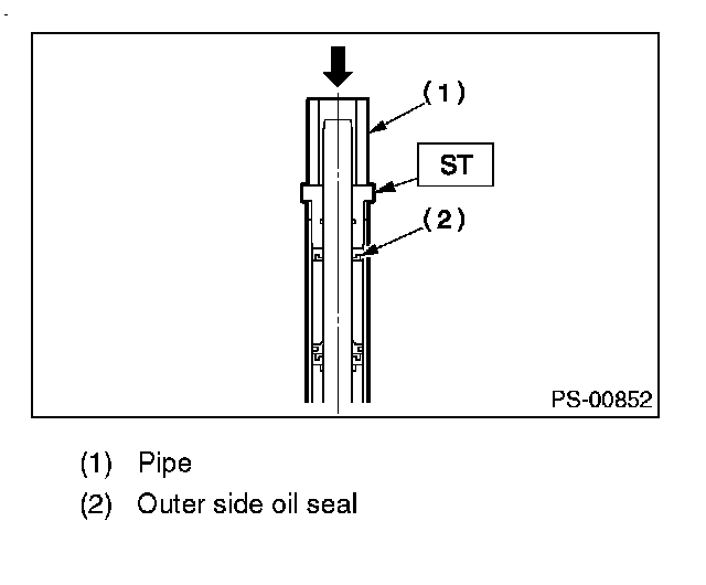 15) Make the ST and the pipe through the rack, and then press-fit the outer side oil seal using a press.