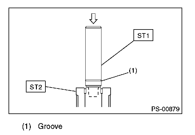 12) Using a press, press-fit until the groove of ST1 is aligned to the end surface of ST2.