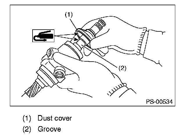 37) After installing, check that the boot end is installed to the groove of the tie-rod.
