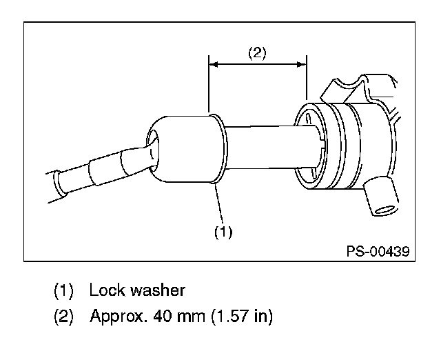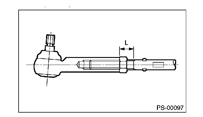 38) If the tie-rod end has been removed, screw in lock nut and tie-rod end to the screwed portion of tie-rod, and tighten the lock nut temporarily in a position as shown in the figure.