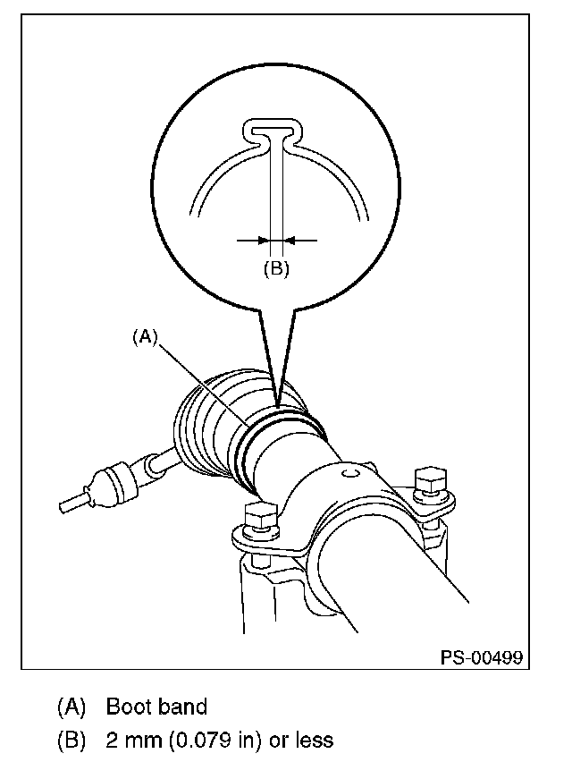 35) Install a new boot band. Using band clamp pliers, crimp it so that the clearance of crimping portion becomes 2 mm (0.079 in) or less.
