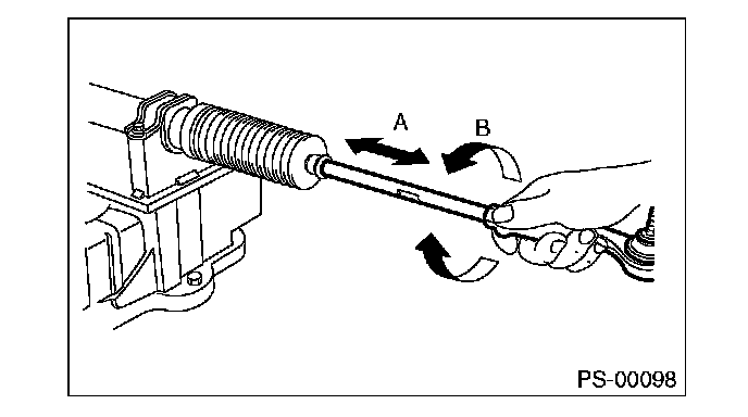 Holding the "B" tie-rod end, turn a few times as slowly as possible.