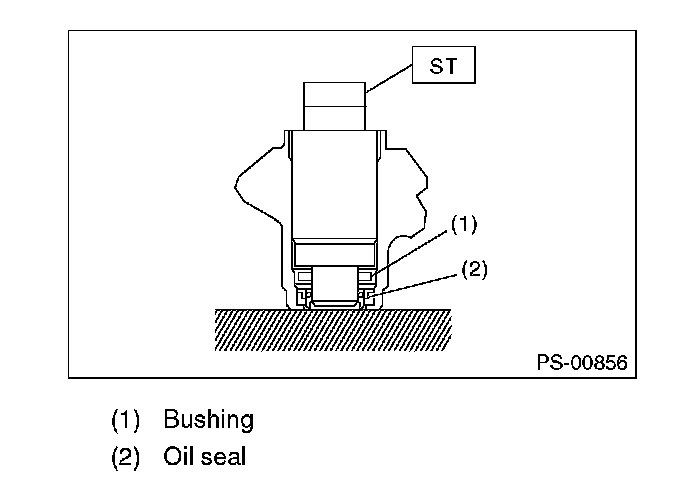 5) Using the ST and a press, install the oil seal and the bushing in valve housing.