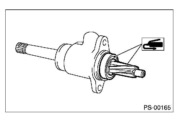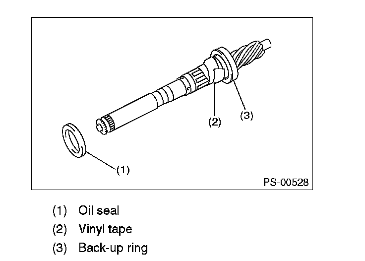 7) Install the back-up ring and oil seal to pinion, and then remove the vinyl tape.