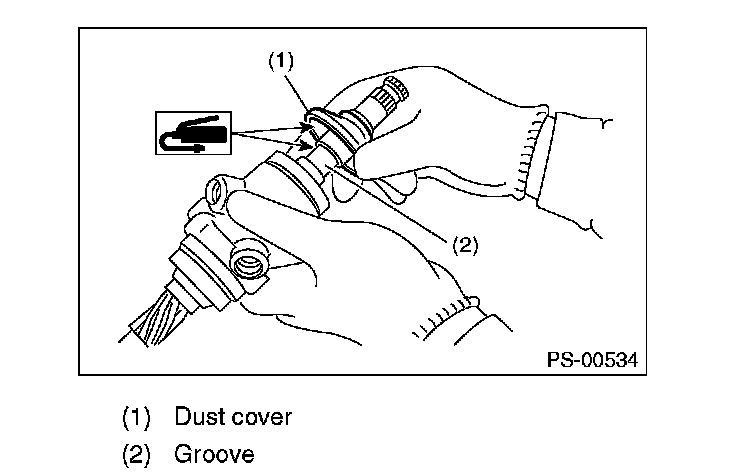 19) Put a vinyl tape around the spline portion and apply genuine grease to the dust cover and install to valve assembly.