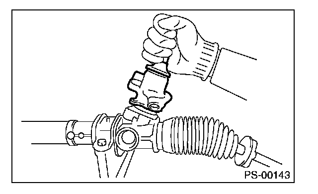 23) Temporarily install the tie-rod to rack end, and then operate the rack from lock to lock for two or three times to make it fit in.
