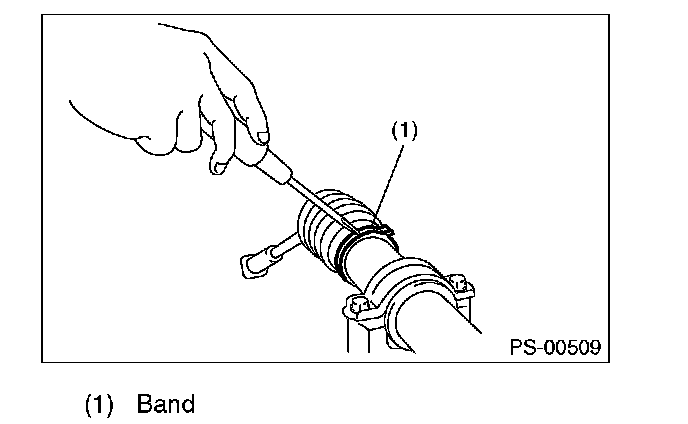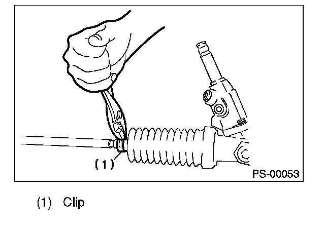 4) Remove the small clip from the boot using pliers, and then move the boot to tie-rod end side.