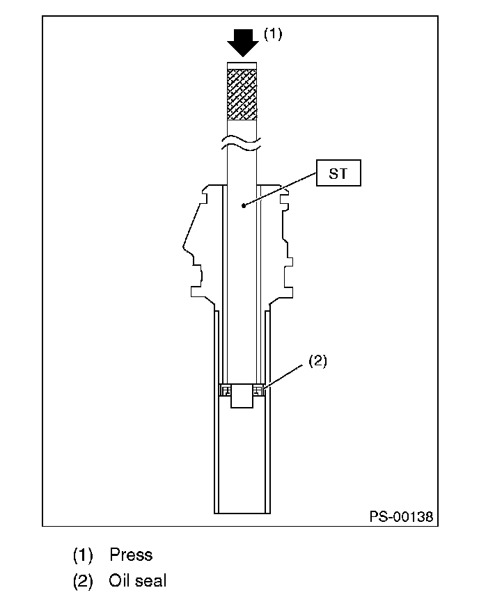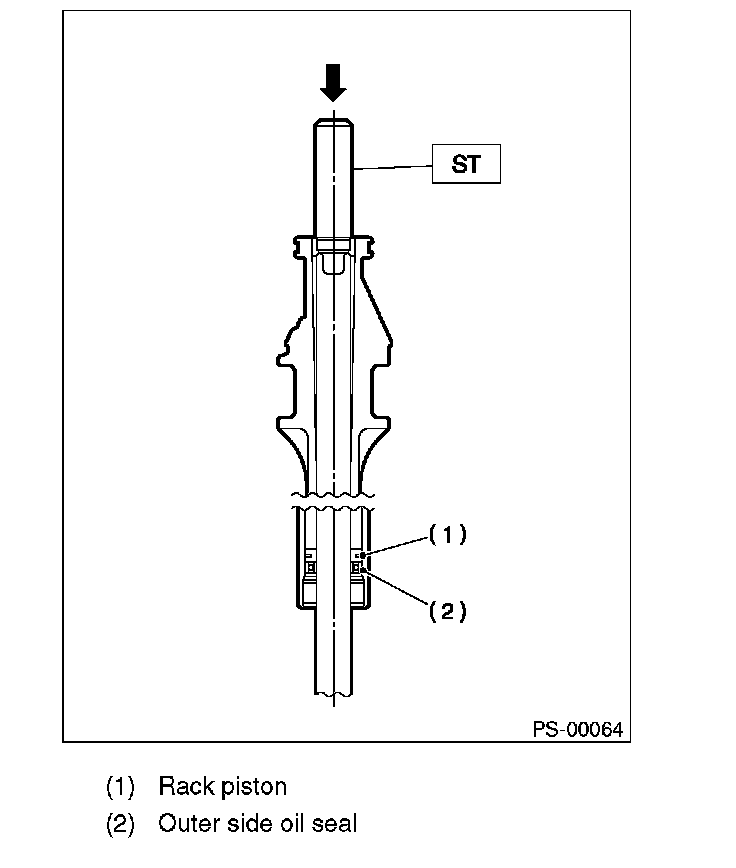 14) Attach the ST on the pinion housing side of rack, and press out the rack with the outer side oil seal.