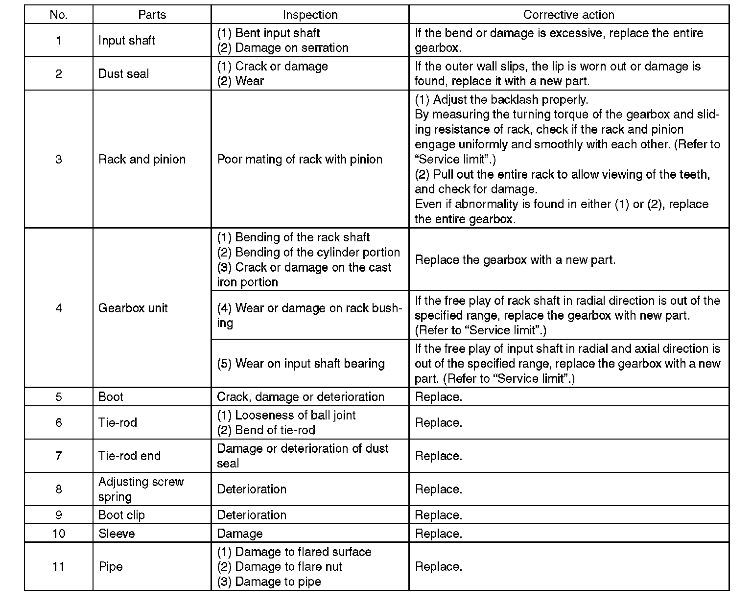 2) When disassembling, check the inside of gearbox for water. If any water is found, carefully check the boot for damage, input shaft dust seal, adjusting screw and boot clips for poor sealing. If faulty, replace with new parts.